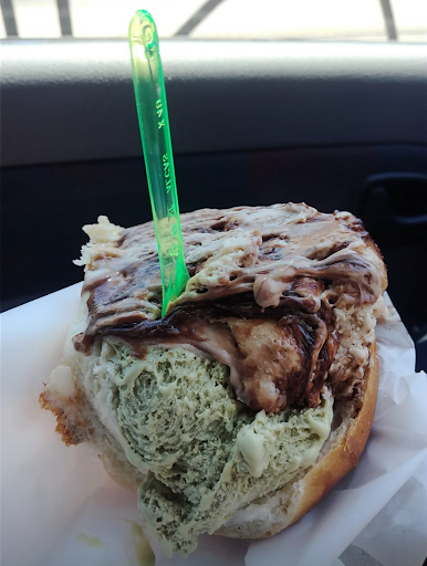 Gelato e torte gelato ottime; servizio pessimo. Il ragazzo al banco, sempre molto indaffarato, non ha avuto tempo per illustrarci i gusti delle torte… abbiamo preso una torta a quattro gusti: fragola (rosa), pistacchio (verde) e altri due gusti che scopriremo provando 😩
