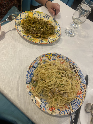 PERFECT. THE BEST. My wife and I just got back to our hotel from eating here the second night in a row. This was the best food we’ve had in Italy by far. We could tell from the first night we should have had reservations but the owner still managed to squeeze us Americans in with a warm smile on his face. We started with the mixed fried seafood and octopus salad, both were amazing. Then we each ordered a pasta dish, spaghetti with clams ( our favorite) and ravioli. Even though we couldn’t breathe we still ordered dessert, tiramisu and giardinetto. Again, both amazing. The next and last night in Palermo we didn’t want to risk eating mediocre food so we tried our luck again at this restaurant and the owners welcomed us with another warm smile and gave us a table. You could tell by him checking his reservations he was busy and still was kind enough to let us stay. This time we ordered the mussels and fried mixed seafood to start. It was once again amazing and by far the best fried seafood we’ve ever had. The sardines were incredible and as if we were eating bass, nothing like sardines in the states. Our pasta was delicious and we had spaghetti and clams again and tried a different pasta, the fettuccine cambusone which was so exotic and delicious. After dinner we couldn’t breathe again but still had to order the same desserts…… this restaurant is incredible and truly cares about the food and...