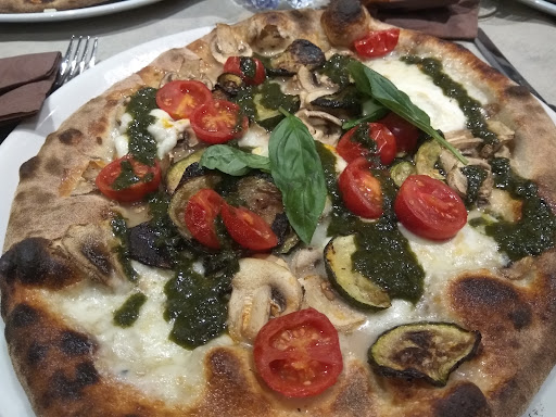 Read moreIl menù è molto vasto e ben dettagliato. C'è la possibilità di scegliere diversi tipi di impasti a lenta lievitazione, e questo è indubbiamente un punto a favore. Il locale è carino, ma un po' piccolo. Come antipasto ho preso una cialda di grana con bufala e speck, molto buona. La pizza che ho scelto si chiama "pesto" ed è la prima del menù ( bufala, pomodorini, funghi, zucchine grigliate e pesto genovese). E devo dire che non mi è piaciuta per niente. La pizza è arrivata un po' troppo molle per i miei gusti, e piena di liquido (forse rilasciata dalla mozzarella). I gusti erano slegati e non mi ha soddisfatto. Il servizio non è stato rapidissimo, ma c'è da dire che era sabato ed il locale era pieno di gente, quindi, questa mia ultima critica è discutibile. Camerieri gentili e cordiali. Il prezzo è un po' sopra la media. Non bene se questa mia insoddisfazione è dovuta alla cattiva scelta del gusto della pizza, ma sicuramente tornerò a provare un gusto più semplice e rigiudicare...