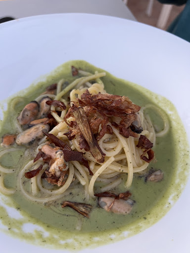 This roof top restaurant was a happy discovery. We booked a table online for 2 people as I wanted a romantic dinner with my girlfriend and we once we arrived we got welcomed by a stunning view of Palermo's mountains and sea. The waiters and staff were super kind and friendly. No one complained that we took lots of pictures on the terrace! The fried seafood antipasto was amazing but the first and second course were a real dream! I ordered a Salmon Busiate (traditional pasta) was incredible and had a depth of flavour and my girlfriend ordered a second dish of fish which arrived a little late. The staff, to say sorry, brought out a delicious fresh side dish with white fish tomatoes and almonds. My girlfriend is Italian and she was not disappointed. The night kept getting better as the sun got down and the dj started playing summer hits (we think they secretly stole our Spotify playlist). Atmosphere was 10/10!! Drinks were also amazing. Would absolutely recommend to anyone who loves good food and wants a nice romantic dinner with a...