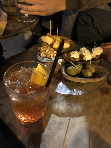 Nice place, very central, incredibly quiet and really stylish. They have a great wine menu as well as fancy cocktails. They give you something to munch on for free with your drink, but you can have dinner as well choosing from a not huge but very carefully selected option - think burrata, maialino, fancy hams and much more. Good portions are well balanced. I gave 4 stars as the payment process was a real pain - we had to wait 25 min to get the bill, eventually it came and it was wrong so we had to send it back and we had to wait another 25 min. At the end we really needed to leave and we went to pay at the till, a bit annoying as it was not busy at all when we left so we didn’t understand what took them so long. But it remains a good place to go and get a nice glass of wine or a funky cocktail...