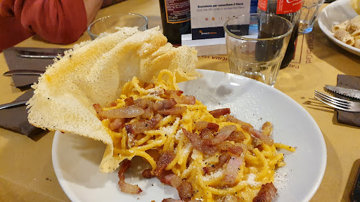 Read moreSono stato a mangiare di Sabato sera in questo locale insieme alla mia ragazza. Il posto era stracolmo ma nonostante tutto la nostra esperienza è stata incredibilmente positiva. Cucina: I piatti che abbiamo preso erano tutti ottimi, ricchi di sapore e ben presentati e soprattutto semplici, esattamente come dovrebbero essere i piatti di una buona trattoria tipica. Tra i piatti che abbiamo preso uno non è stato di mio gradimento, ovvero la Carbonara di Mare, ma non perché fosse fatta male in quanto era fatta benissimo, al dente con un'ottima cremina di uovo e pecorino e tanti frutti di mare. Semplicemente non era di mio gusto Servizio: questo è il punto più positivo in assoluto. I camerieri erano oberati di lavoro, letteralmente correvano per stare dietro alle comande. Tuttavia erano super responsivi e qualunque richiesta, che fosse una forchetta, dell'olio, del sale, del piccante veniva evasa in pochi secondi, neanche minuti, proprio secondi e con un sorriso ed una battuta di buon gusto. Addirittura è successo che l'abbacchio che abbiamo ordinato è arrivato crudo all'interno, ho chiamato la cameriera dicendole :" mi scusi, l'agnello andrebbe mangiato ben cotto" e lei senza battere ciglio " Lei ha assolutamente ragione, ci scusi, gliene porto un altro" ha preso il piatto e l'ha portato via. Il proprietario o il direttore di sala si è poi avvicinato dicendo che loro l'abbacchio lo servono un po' più rosa per evitare che diventi stopposo però che chiaramente abbiamo fatto bene a dirlo se fosse troppo crudo a nostro avviso. Ovviamente non ce l'hanno fatto pagare. Prezzo: unica stella in meno rispetto al massimo è data proprio da questo. So perfettamente che è aumentato il prezzo di tutto. Però visto che ciò che avevamo preso era comunque molto semplice ed economico, quindi i carciofi, i fagioli, le cotenne, l'agnello stesso e soprattutto che abbiamo preso solo 4 piatti, cioè due antipasti e poi abbiamo diviso un primo e diviso un secondo. Mi è sembrato esagerato pagare 55 euro in due, se il prezzo fosse stato intorno ai 20 euro a testa ci sarebbe stata anche la...