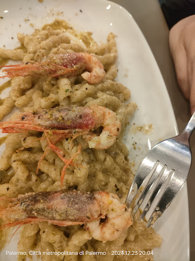 primi semplicemente FAVOLOSI, le busiate in particolare (pistacchio + gamberi l'uno e vongole + gamberi + bottarga). spaghetti ai ricci al sapore di mare e fettuccine all'astice idem, forse quest'ultimo leggermente salato, ma il sapore del sale era nelle chele (enormi e super saporite) e sapeva di mare.