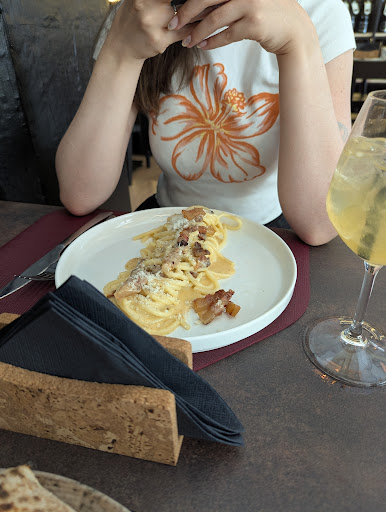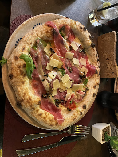 "The healthiest pizza is the one you don't eat" 😓 Such a nice location, good value for money, drinkable open wines, a waitress who speaks English... Very nice, elegant music.