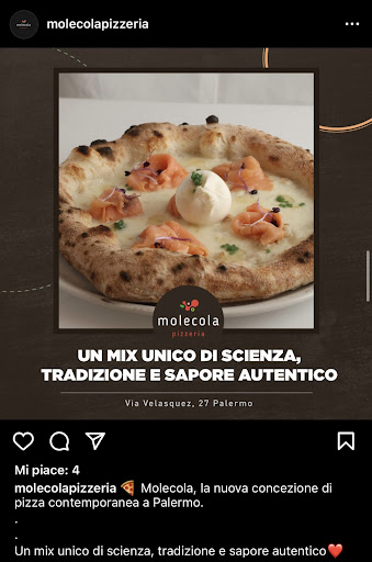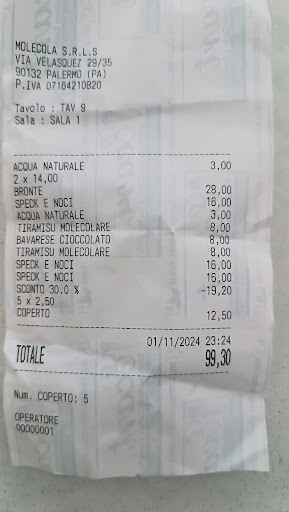 Read moreSono particolarmente stupita del fatto che non ci sia nemmeno una recensione negativa. Partiamo col dire che Molecola è uno di quei posti in cui vige l’ingiustizia del far pagare come aggiunzioni le sostituzioni (che, di base, “non sono ammesse”): far pagare qualcosa che non si mangia è quantomeno “inelegante”. Alla richiesta di spiegazioni viene risposto: “Le pizze escono già predisposte” e alla domanda “Non vengono fatte sul momento?” ovviamente il cameriere rimane spiazzato e cerca di riprendersi, spiegando che si cambiano ingredienti solo nel caso di intolleranze (quindi se un ingrediente non è di tuo gusto sei comunque costretto a pagarlo). Seconda cosa: Ordino una pizza “Velasquez”, allego foto di Instagram della pizza. Mi arriva una pizza con mozzarella e 5 fette di salmone con sopra una sorta di spuma di formaggio. Alla domanda “Non c’era la burrata? Nella foto di instagram c’è” la risposta è stata “No, queste sono foto che abbiamo fatto all’inizio per sponsorizzare il locale, ma noi usiamo la spuma di burrata”. Non commento nemmeno. Per concludere, una pizzeria con prezzi decisamente eccessivi per quello che offrono, politiche commerciali poco vicine al cliente e pubblicità non attendibile. Di certo...