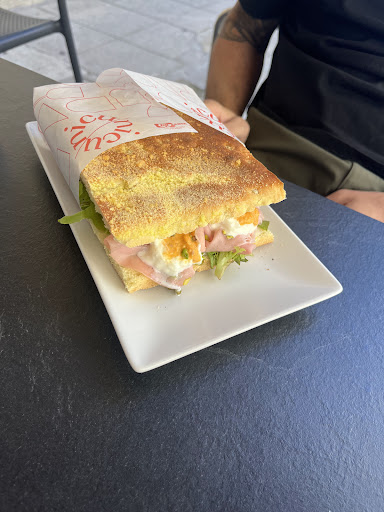 Read moreWent there for lunch and had been there for dinner a couple nights before. The sandwiches are solid but my sandwich cost about 7 euros for dinner. At lunch, the waitress pushed the “Limited Edition” sandwich which was just eggplant parm on break with some porcetta. Sandwiches are typically 6-8 euros. Magically, when it was time to check out, I was charged 12 euro for the sandwich, 1 euro for service and 1 euro for cover. The price of the sandwich wasn’t listed anywhere and I had not been charged service or cover (at a sandwich shop!) the night before.