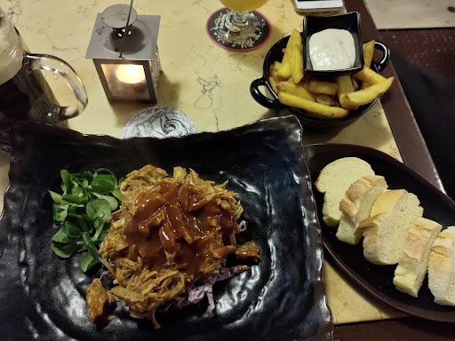 Read moreSono stato al Noroc con la mia ragazza a gennaio. È necessario prenotare qualche giorno prima per trovare un tavolo il sabato, mentre la domenica sono chiusi. L'interno del locale è molto carino, nel tipico stile dei pub nord europei. Purtroppo noi eravamo nella parte esterna, chiusa da un telone in plastica, decisamente scialba. Il servizio è molto cordiale (a volte anche troppo, ci hanno chiesto se andasse tutto bene 4 camerieri diversi) e velocissimo, troppo veloce, il che ci porta alla vera nota dolente: il cibo. I nostri piatti sono arrivati 5 minuti dopo averli ordinati e mentre per l'hamburger di pollo della mia ragazza ci può stare, per il mio pulled pork su letto di cavolo rosso (visibile in foto) è decisamente poco. So che non sarebbe possibile cucinarlo in tempi brevi ma riscaldarlo al microonde non mi pare adeguato, anche considerando il prezzo. Complessivamente il mio piatto non era male, invece la mia ragazza ha trovato l'hamburger piuttosto scipito. La scelta delle birre è notevole più per qualità che per quantità. Non servono vino ma ci sta. In conclusione il rapporto qualità-prezzo non è il massimo, però ci tornerò per provare qualche...