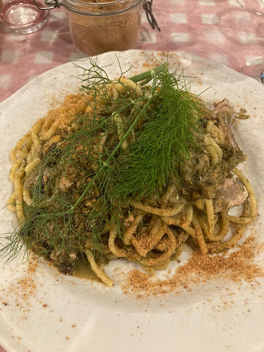 Read moreBy far the best Osteria experience I had in Palermo. Unpretentious and uncomplicated traditional Sicilian food at its best. Portions were big and tasty. Great value for the money you pay. It's neat and clean and the music also was at a sensible level (Smooth vocal Jazz, to whom it may concern). Perfect for a walk in as well, as they have plenty of space (inside) and a few tables outside. Staff was friendly and helpful even though our Italian was basically non-existant. Housewine was absolutely drinkable and you can order in carafes, as well. We had the Caponata and Pasta Anciova as well as a simple but traditional aglio olio (correct name I forgot, scusi, but with freshly chopped parsley and chili added, basically). Wonderful last dinner for me and my wife. Wished we had gone there earlier already....