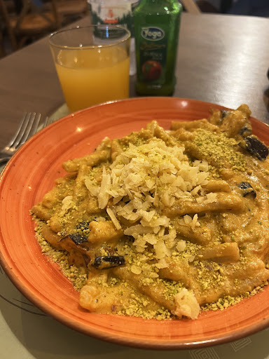 I spent a few days in Sicily, and on the night before I flew out, I came here for dinner at the suggestion of a friend. I came for the pistachio pasta, as their menu of over 20 pistachio dishes is their claim to fame. Let me tell you, it did not disappoint! I got the Norma with eggplant and Parmesan. It didn’t look like a ton of pasta, but it was so filling that I was struggling to finish it all, but it was so delicious that I knew I had to. The servers were also very attentive and kind so I felt perfectly at home and welcome to take my time and ask them if there was anything else I needed. Would 100% recommend and...