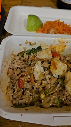 I ordered the beef fried rice and uploaded a video to show everyone how soggy and soaked with oil this dish was. The taste was not that bad, but definitely on the sweet side. Thankfully, I ordered the spicy sauces and drizzled it everywhere over the food. One of the sauces is meant to be a "prik nam pla" sauce, but they even got that wrong and made it with soy sauce and Chili peppers. I have eaten Thai food around the world and in NYC ( where I live), and this is not thai food. This is soggy food sautéed with oyster sauce and sweet soy sauce.