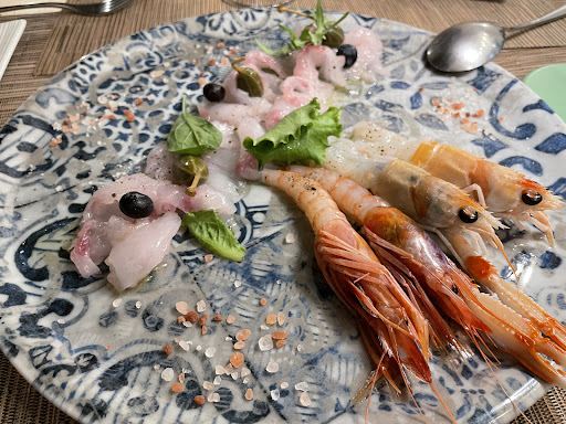 Read moreThe food here is amazing! We had the sashimi appetizer with red shrimp (apparently a Sicilian specialty), some fish of the day I didnât quite understand the name of, and some white shrimp; it was extremely fresh with very interesting pickled olive-variant (doesnât look like an olive but tastes a bit similar to but better than the usual pickled olives). We also had spaghetti with octopus ragu (with tomato sauce) and it was absolutely fantastic, easily the best octopus spaghetti Iâve ever had. For secondi, we had the special fish of the day, it tastes extremely fresh, with tomato-sauce-seared potatoes on the side that were very tasty. This restaurant is very small (âristorantinoâ) so I do recommend making a reservation. Theyâre open for lunch and dinner. They have handwritten Italian and English menus. It is on a quiet side street next to some very beautiful ancient ruins with vines grown in. I would definitely...