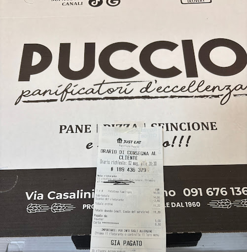 Read moreSono un cliente di Puccio da un paio di settimane e pur non abitando vicino al Panificio, vado apposta per acquistare le pizze e devo dire che trattasi di Pizze con la P maiuscola !!! Buonissima lievitazione, conditissime e cotte in maniera perfetta !( puntualizzo, che sopra la pizza, per evitare il contatto con il cartone, mettono un foglietto di carta trasparente, che sottolinea la loro attenzione ai particolari) Accoglienza sempre gentile e cordiale, sia da parte del Proprietario/a che dalle Commesse (e questo è un fattore da...