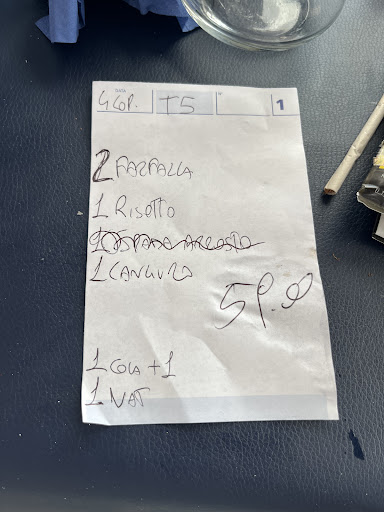 Eravamo in 4: io, mia madre, mio fratello e una mia amica. Sono tornata qui fidandomi del ricordo di un posto semplice, informale, dove si poteva scegliere liberamente tra un piatto di pasta o un panino. Oggi è l’opposto: caos totale, maleducazione e gestione a dir poco vergognosa. Appena arrivati, notiamo che nel menu non ci sono più i panini. Chiediamo spiegazioni e ci viene detto che i panini si ordinano in un’altra parte del locale, più distante, e che la pasta si può portare lì, ma non il contrario. In pratica, ci viene detto di spostarci noi in quell’altro spazio (dopo esserci già accomodati), così da poter ordinare i panini lì, mentre i primi piatti ci sarebbero stati portati. Ma se invece si resta dove si è già seduti, non portano i panini. Una logica completamente insensata. La mia amica, che non ama il pesce, è stata quindi costretta a prendere un piatto a base di pesce, perché semplicemente non volevano portare un panino al nostro tavolo. Chiediamo un fritto misto (regolarmente indicato nel menu), ma il cameriere – maleducato e sbrigativo – ci dice che non è disponibile, proponendoci insistentemente l’antipasto più caro (18€, ovviamente a base di pesce). Lo rifiutiamo più volte, ma continua comunque a cercare di rifilarcelo. Poi, l’attesa infinita: un’ora e mezza per ricevere UN risotto, DUE piatti di farfallette al salmone e, infine, il panino. Panino che – incredibilmente – nel frattempo abbiamo visto servire a un tavolo arrivato molto dopo di noi, e senza nessun problema. Chiediamo quindi, con ovvia irritazione, perché a loro sì e a noi no. Solo allora, con estrema maleducazione, ci dicono che possono portarci il panino. Chiediamo il menu panini tre volte: mai ricevuto. Ci hanno proprio detto che non ce lo avrebbero portato. Non capisco perché. Due persone in cucina per più di 150 coperti. Il locale è nel caos più totale, il personale scontroso e svogliato, il servizio lento e disorganizzato. Il cibo? Mediocre, niente di cui valga la pena parlare dopo tutto questo teatrino. Quando chiediamo il conto, ci portano un foglietto scritto a mano, sporco, senza alcun valore legale. Solo dopo forte insistenza ci rilasciano lo scontrino fiscale. È chiarissimo che fanno tutto in nero. Un tempo era un posto tranquillo, oggi è una macchina per fregare turisti e clienti locali, dove il rispetto non esiste. Ambiente squallido gestito da persone con la terza media (se ci arrivano) e senza la minima competenza di gestione di un’azienda. Guardandoci intorno, il 90% delle persone sembrava scontenta quanto noi e il restante 10% era firmato da bambini. Evitatelo. Risparmiate soldi,...