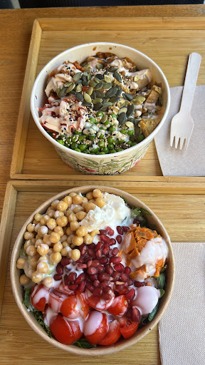 The food was okay, very fresh but a bit tasteless. The sauce seemed to be very week. Good portions but quite expensive. Also Vegetariern options and of course fresh salmon or tuna. The salmon tasted good and fresh! The staff was nice and welcoming but was still very inexperienced. They also didn't have some of the options and ingredients on the menu. The sitting wasn't good, the chairs are really uncomfortable and small (just for small people). Also important: they have finished poke sets and ones you can make yourself, I recommend those, but it takes up some time since there are a lot of things...