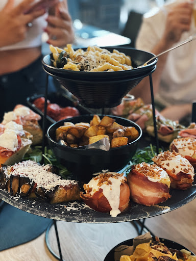 Purtroppo baso la mia esperienza su tre diverse serate. Sul suggerimento di amici la prima volta abbiamo cenato a base di panini, dei quali alcuni molto buoni, altri molto meno riusciti accompagnati dalle patate della casa, sicuramente sapide, ma altrettanto pesanti. La seconda serata abbiamo approfittato dell'aperitivo rinforzato, per cui è noto il locale (ma da richiedere improrogabilmente prima delle 8.30). Anche qui certamente buono lo spritz, ma molto più ordinario il resto, costituito perlopiù da una rivisitazione delle patate in varie vesti, fritte, gateaux, crocchette etc. Accompagnato da rosticceria mignon, tipica di Palermo ma un po' dozzinale. Purtroppo è stata estremamente deludente l'ultima serata. Con la prenotazione per le 21.30 arrivo alle 21.10. Ci siamo visti superare da almeno 5 gruppi di persone fino al riempimento del locale. La gestione, interpellata a si è giusticata alle 10.20 dicendoci senza mezze misure che nonostante la prenotazione e l'arrivo in anticipo avremmo dovuto attendere che si liberasse uno specifico tavolo di persone, arrivate (loro) in ritardo e giusto 10 minuti prima di noi. Tradotto in parole povere ci ha cancellato la prenotazione, con noi già in sala e un'ora dopo l'orario di arrivo prenotato... tutto questo senza neanche ipotizzare soluzioni alternative che potessero tamponare il ritardo e il disagio, costringendoci ad andare via. Questo succede quando un locale ritiene che per un cliente che perdi cento ne trovi...non so se è così ma per me questa filosofia non funziona, soprattutto quando si prenota, un po di ritardo ci puo' stare e si può tollerare, ma certamente ci si aspetta serietà... Retrogusto: amaro purtroppo e con...