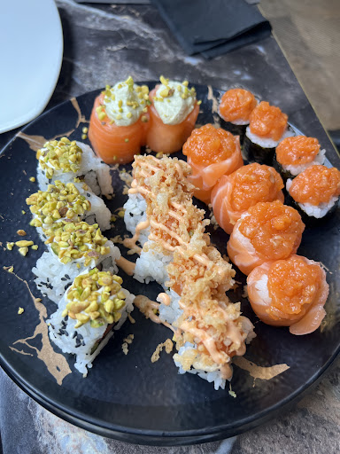 Read moreSushi discretamente buono. Tolgo 3 stelle per il servizio, ho notato molta disorganizzazione e mancanza di rispetto e cortesia. Eravamo arrivati alle 12:30 (orario di apertura) e nonostante avessimo la prenotazione, ci hanno chiesto di tornare più tardi (verso le 13). Torniamo alle 12:50 e notiamo che dei tavoli erano già stati occupati. Ho rinetuno questo già una mancanza di rispetto, perché ci potevano fare accomodare al tavolo dato che alle 12:30 erano già tutti apparecchiati. Specifico che il mio ragazzo è celiaco, e gli portano solo il foglio con le scelte gluten free, ho dovuto chiedere io successivamente che gli portassero al tavolo la salsa di soia adatta a lui. (Insomma, i camerieri mi sembravano un po' assonnati) Qui comincia il bello: ordiniamo i primi 8 piatti. A me arrivano tutti, a lui non hanno portato nulla. Ci lamentiamo più volte mentre arrivavano i miei piatti che a lui non fosse ancora arrivato nulla. Solo quando io avevo già finito i miei, gli servono un piatto, poi un altro e poi altro vuoto cosmico (Ah, gli involtini primavera neanche li avevano, nonostante fossero nel menù senza glutine)... Ci rifiutiamo di ordinare il secondo turno di piatti se prima non avessero portato tutti i piatti del primo turno a lui... Alcuni li portano, altri continuano a non arrivare, ma stufi, ordiniamo altre cose... Il secondo turno va un po' meglio, ma alla richiesta di una seconda bottiglia di acqua aspettiamo per altri 20 minuti... Insomma, un'attesa continua e una mancanza assoluta di organizzazione... Non torneremo più, al massimo speriamo che gli altri Sal capone della città siano più...