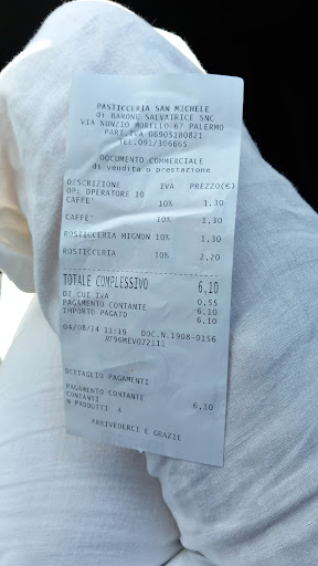 Pasticceria tra le più rinomate della città e dal livello qualitativo sopra la media. Le creme a base di ricotta sono sempre di elevato livello, anche in estate, e ciò per certi versi è sorprendente, ma in realtà è il frutto di una gestione professionale dei prodotti lattieri attraverso la catena del freddo. Le creme pasticcere a base di farine sono anch’esse di ottimo livello e si apprezza la freschezza delle produzioni resa possibile dall’ampio smercio quotidiano. Inutile sottolineare il piacere di ciascun pasticcino o prodotto da forno: sarà il gusto personale a dettare il giudizio. Quel che conta è che, gestione familiare, pulizia del locale e del personale, sua disponibilità e rapidità di evasione dell’ordinazione, perfezione estetica dei prodotti, elevata qualità degli ingredienti(creme, cioccolato, confetture, granole, cialde) sono sopra lo standard della maggior parte delle pasticcerie palermitane. Personalmente la collocherei entro la stretta cerchia delle migliori cinque. Il segreto sta soprattutto nella maestria della lavorazione e nel dosaggio degli ingredienti, con il principale, ovvero lo zucchero, che non deve mai essere presente in eccesso, ed i grassi animali che non possono superare una certa soglia, diciamo il 30/35 per cento. La pasticceria San Michele merita di certo una menzione particolare per lo sforzo nel fare il meglio possibile stando dentro un sistema in cui i costi sono sempre piuttosto elevati (personale, materie prime, energia, servizi,...