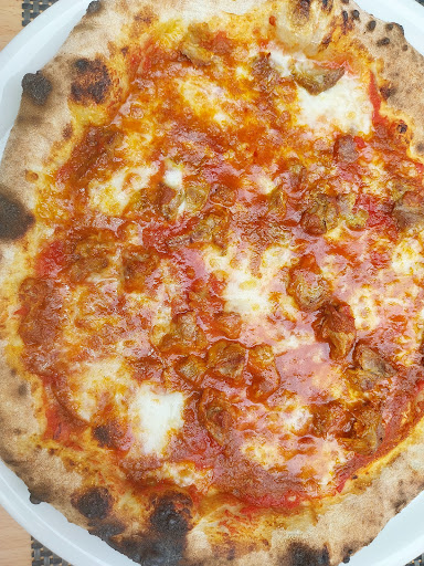 Read moreZ powodu burzy odwiedziliśmy właśnie ta pizzerie dodzina 16:30 nie wiem od czego zacząć:-D? Po przygotowaniu stolików które pozwolił nam szef kuchni zabrać z zewnątrz przystąpiliśmy do zamówienia wybraliśmy 4 zestawy combo z skrzydełkami i fantą i jedna pizze chiken ,niestety okazało się że skrzydełkek nie ma wiec szef zaproponował fryki lub nugetsy ale bez przekonania co do nugetsów ,niestety wybraliśmy nugetysy snujac wizje ala kfc:-D po przyjeciu zamówienia szef kuchni wyglądał na zakłopotanego naszą obecnośćią ale podkrecił piec i wykonał pare telefonów i po krótkiej rozmowie z "włascicielem lokalu"przystąpił do pracy po 10minutach dotarł asystent od nugetsów które dostarczył "szef" w reklamówce z pobliskiego sklepu 👍 ... po chwili okazało się ze brakuje też fanty wiec "szef" ponownie udał się na zakupy do pobliskiego sklepiku 😉 ....po parunastu minutach ponownie zawołał mnie szef kuchni ..i oznajmił że ciasta ma tylko na 3 pizze z 5 zamówionych 🙈 ale w lodówce miał jeszcze ciasto wiec po namowie spróbował zrobić pizze chiken na którą pokroił nugetsy z marketu które o lata świetlne odbiegały od kfc itd raczej nie z mielonki kurczaka 😭 smakowały jak pies z budą pomielony🤢 na nasze szczęscie pizza nie wyszła wiec zapłaciliśmy tylko za 3 pizze ...ale podsumowując pizza margerita bardzo smaczna wnioskuje że innych lepiej nie zamawiać obsługa również na 5+ fanta puszka 0,33 według obliczeń 3,5 euro za sztuke trochę drogo... ale co się raz zobaczy to odwidzieć...
