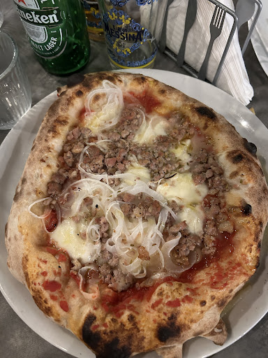 Ci siamo seduti alle 21... Richiamato piu volte il cameriere per prendere le ordinazioni, ci riusciamo dopo mezz'ora ma vabe'...prendiamo da bere antipasto caldo e pizze (siamo in 8) ceniamo alle 23. Fine!!! La proprietaria ovviamente dopo le lamentele tra alcune pizze che non andavano e il ritardo si giustifica dicendomi che il locale era pieno, premesso che dalle 21 alle 23 avrò visto uscire per gli altri tavoli (120 coperti circa detto proprio dalla signora) 3 pizze e soltanto primi e secondi... Al momento di pagare la suddetta si scusa e ci riferisce che quella sera il pizzaiolo le aveva dato buca!! Scusa e perché non me lo dicevi prima che avrei preso una tagliata di carne e ci avresti guadagnato anche di piu?? O comunque visto la luuuuuuga pausa tra l'antipasto e la pizza portami qualcosa da mangiare!! Solo per lattesa lunghissima ceri locali per me potrebbero o...