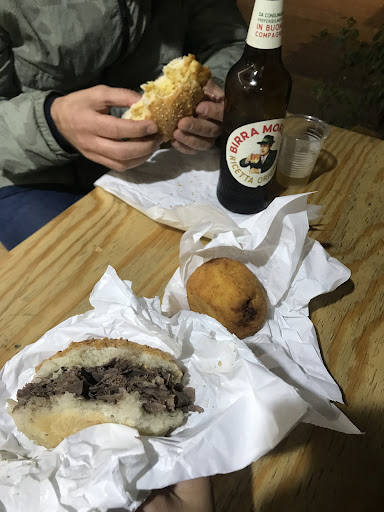 Read moreAuthentic and fresh street food for authentic local prices. Not a tourist place. Food is delicious and the service is fast so don’t be scared if there is a queue. Be brave and try the local hit, pani câ meusa, you won’t regret! It’s absolutely delicious, no wonder it’s so popular here! Do not let the ingredients (spleen) scare you off before trying. It goes well with a bottle of cold Moretti beer! If you’re less brave or vegan, here you can get the freshest panelle, aka chickpea fritters in a sandwich or by themselves. Arancino (fried rice ball with ragout inside) is also top! Will definitely go back...