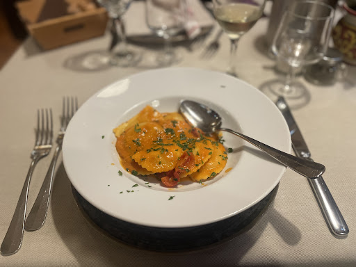 Read moreVery nice food in a traditional environment. Busy on a Monday night. Warm and welcoming service (although as evening progressed it felt like we’d been forgotten a bit). Very good value (esp for a very central location - it’s opposite Prada store) and we all had generous portions. Cosy trattoria environment. No terrace, but actually made a nice change to eat inside and a lot cooler! Lobster Ravioli delicious. Fresh tuna steak with black sesame was huge and very well cooked (if you like it on the medium rare side). Home made chips (which were nice & felt unusual vs our other experiences). Carbonara Roman style which we like but we found a touch too cheesy/salty. Bottle of nice house wine. All in all a very decent meal...