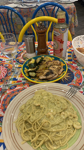Típico restaurante ubicado en una zona muy turística (la plaza del pintoresco pueblo de Mondello, a 13 kilómetros de Palermo), más diseñado para sacarle los cuartos al turista inculto que para servir comida de calidad. Me pasaron al comedor interior, que está decorado pretendidamente al estilo marinero y "siciliano", un poco kitsch. Fui a almorzar, solo, en temporada baja (finales de marzo) y este restaurante (como muchos del entorno) estaba absolutamente vacío. Me dio un poco de apuro que no hubiera ningún comensal, le eché un vistazo a la carta y me decidí a entrar, para que vendieran algo hoy. Craso error. Pedí agua para beber, spaghetti al pesto e gamberetti (espagueti con salsa al pesto y gambitas) (14€), un braseado de verduras (5€) y, de postre, casalette alla riccota (5€). Para empezar, me trajeron una botella de agua de un litro (2,5€); luego vi que tenían en la carta botellas de 1 l. (por 2,5€) y de 0,5 (1€); lo lógico habría sido que me hubieran traído la botella pequeña, ya que era para mí solo, pero se conoce que querían hidratarme a base de bien, con tal de hacer caja. Trajeron, como cortesía de la casa (todo hay que decirlo), una conserva casera de alcachofas, pero no valían nada (demasiado fibrosas). Eso sí, el pan estaba crujiente y bueno. En los restaurantes italianos cobran un precio por "servicio" (que oscila entre los 2 y los 5 euros por persona; en este caso, el precio era de 2,5 €), pero luego el pan está incluido en el precio. Los espagueti estaban normalitos: demasiada salsa al pesto (que parecía engrudo) y diminutas gambas congeladas. El braseado de verduras estaba literalmente incomible: creo que habían usado verduras congeladas, y sabían a revenidas; me lo dejé casi íntegro y, cuando le dije al encargado que no estaban buenas, él se limitó a asentir, como mostrando su acuerdo, pero luego igual me cobró el plato en la cuenta final. Un detalle feo. El postre no era nada especial: unas simples empanadillas fritas, rellenas con algo de queso ricota, y servidas con chorritos de jarabe de chocolate. Para acompañar al postre, pedí un té verde, pero no tenían té, solo café. En definitiva, salí con 28,50 euros menos en el bolsillo y la ingrata sensación de que me habían timado. Para olvidarse...
