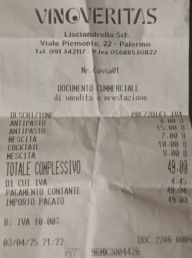 Read moreÈ la prima volta che vado ed è la prima volta che mi ritrovo a pagare un calice di vino 13 euro senza che la bottiglia venga presentata e senza la possibilità di assaggiare. Raramente scrivo una recensione perché può succedere di trovarsi male tuttavia questa volta si è toccato il fondo. Sono stata con due amiche, siamo arrivate, abbiamo chiesto un menù e ci hanno detto che non lo avevano. Ci hanno fatto scegliere tra vino rosso o bianco, ci hanno detto qualche nome e abbiam scelto due bicchieri di frappato e uno di amaone. Dopo un po' sono arrivati tre calzoncini e ciotoline con patatine, arachidi e olive (senza stuzzicadenti). Una di noi vegetariana ha chiesto se potesse avere qualcosa senza carne. La cameriera ha risposto che avrebbe portato dei calzoni con le acciughe. Dopo mezz'oretta non è arrivato niente. Abbiamo chiesto e ci è stato detto "non c'erano", abbiamo chiesto se potessero portarci altro e hanno risposto "dal menù". Dispiaciute per il trattamento abbiamo chiesto il conto. Intanto gli altri calzoni si erano raffreddati. In totale 27 euro 3 calici di vino. Non è questione di prezzo ma di trattamento e accoglienza. Non siamo state avvisate che quello che stavamo aspettando non sarebbe arrivato e quando abbiamo chiesto spiegazioni alla cameriera ci ha risposto "non potevano uscire...mi sono dimenticata di diverlo". Ancora più demotivante e mortificante è stato vedere che non è stato fatto niente per venirci incontro, per rimedire o essere semplicemente disponibili mentre poco dopo al tavolo accanto hanno fatto assaggiare il vino ad un ragazzo appena arrivato! Ogni cliente è uguale...ma il trattamento è sembrato alquanto...