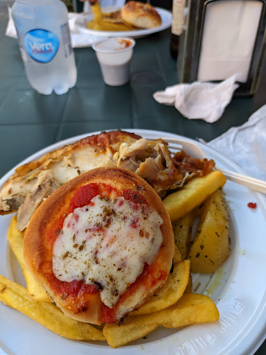 Though I do not know the language they seemed pleasant! A nice patron helped. Wonderful prices and tasty foods! I ordered two little fried bread things(with minimal meat and cheese inside) and a romano pizzotti... the two little fried bread things filled me up! Google translate helped me get a box, to save my pizzotti for later! The rotisserie chickens being fired makes this little place very warm, but there is seating outside to wait and/or eat at. Great...