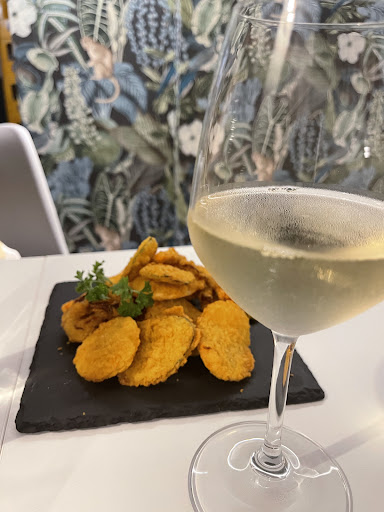 Posto consigliato da un mio collega. Due adulti e due bambine. Interno piccolo, circa 20 coperti ma ben distanziati e la porta aperta rende l'ambiente arieggiato e poco chiassoso. Prendiamo 2 antipasti 3 primi e un secondo, due calici di Cesanese un acqua e un caffè. Tutto squisito. Antipasto di verdure in tempura e poi antipasto Le Mura. Eccezionali, prendeteli, non ve ne pentirete. Il secondo in particolare è una chicca. Come primo fettuccina al ragù bianco e caciocavallo, molto buono, una porzione grande di pasta al pomodoro divisa per le due bambine. Come secondo l'altra pietanza eccezionale, il maialino a lenta cottura. La salsa di agrumi il giusto accompagnamento, di contorno le verdure croccanti e le patate a sfoglia. Il pranzo è stato veramente una sorpresa come il conto finale: non ho trovato l'odioso coperto, pur avendo avuto pane, e la pasta al sugo delle bambine, ed erano paccheri di Gragnano. Il conto lo abbiamo pagato noi adulti insomma e a me piace questa ristorazione che punta alla qualità dei piatti serviti e alla soddisfazione del cliente e che non vuole fare cassa con un piatto di pasta al sugo con il formaggio. Servizio gentilissimo e tempo di attesa adeguato. Consiglio e ritengo di...