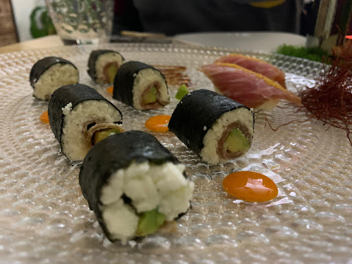 In un ambiente moderno e minimal, attento e curato in ogni dettaglio, ci accoglie lo chef pronto a spiegare la "filosofia" del suo ristorante che unisce la tradizione campana alle tecniche ed ingredienti giapponesi. Si parte con alcuni amous bouche: cialda croccante con majo di genovese di tonno, pizza in doppia cottura con lardo pancettato e crema di nerano, sfera di parmigiano su salsa muhammara (salsa indiana a base di peperone arrostito), parmigiana di melanzane con miso. Per antipasto ci viene servito un gambero in tempura karaage (usualmente dedicata al pollo) con fonduta di bufala, salsa teriaki fatta in casa, olio al basilico e scarola ripassata. Si prosegue con un mezzo pacchero con gamberi in doppia consistenza con fonduta di bufala, majo al basilico e zeste di lime. Come secondo un filetto di spigola al vapore e flambato, crema di spinaci, spinaci Tai e quenelle di patate alle erbe. Ambiente e servizio attento e discreto accompagnano degnatamente una cucina consapevole ed equilibrata che fonde sapientemente il gusto tradizionale campano con ingredienti e stili di cottura giapponese. Consiglio vivamente...