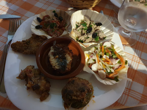 0 STELLE. Posto sconsigliato assolutamente se non volete soffrire di gastrite o mal di stomaco. Premetto che la sala all'interno non era tanto fresca. Ordiniamo antipasto, primi e pescespada grigliato. Arriva antipasto....molto "gourmet", e dico gourmet per la quantità ( una fettina sottile di Alice marinata, una conchiglia con salsa al pomodoro con 1 tentacolo e 20 olive nere, una ciotola di insalata di polipo affogata all'olio di semi, un pezzo di frittata FREDDA di cosa non lo so. Arrivano i primi, pasta scotta e riscaldata IMMANGIABILE. E per concludere arriva il pescespada sul balcone e lasciato lì 5 minuti perché non sapevano a chi consegnarlo, dopodiché, dopo che si sono riuniti i padroni e camerieri hanno capito a chi consegnarli..ovviamente al.nostro tavolo..c'è li portano ma si sono dimenticati di sparecchiare... Concludo che il vino della casa era caldo e ci hanno infilato dei cubetti di ghiaccio... Non...