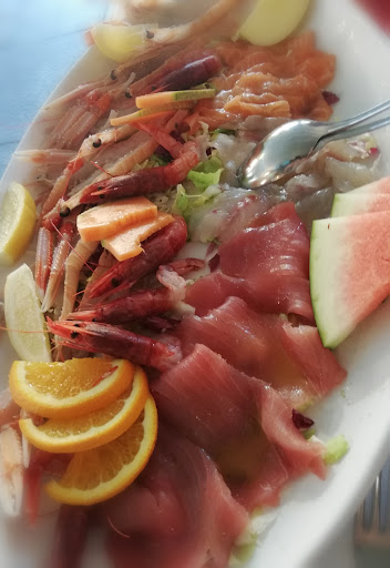 Read moreIeri sera io e mia moglie siano Stati in questo ristorante, inizio dicendo che esteticamente è molto fine ed elegante! Poi ottimo il servizio: veloce e fatto con molto garbo e simpatia. Anche il cibo davvero ottimo partendo dall'antipasto di mare che comprendeva: parmigiana di branzino, zuppetta di cozze, gamberi in salsa rosa (enormi e davvero gustosi), insalata di mare, affettato di tonno e salmone affumicato. Poi come primo piatto abbiamo preso il risotto ai frutti di mare, anche questo pieno di pesce e porzione abbondante. Infine come dolce abbiamo preso il salame di cioccolato e la buonissima cheesecake rivisitata che consiste nell'avere una base di biscotto sbriciolato alla liquirizia con a posto della farcia a base di formaggio una deliziosa crema al mascarpone con sopra dei frutti di bosco e qualche goccia di crema pasticcera. Posto quindi super...