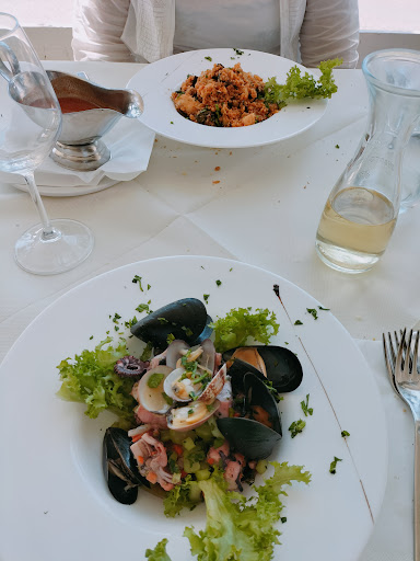 Sono dispiaciuta a dare due stelle ma purtroppo la nostra esperienza non è stata delle migliori. Abbiamo ordinato 1kg di ricciola e ci hanno servito 1.25kg di coda di rospo (scoperto al momento di pagare, che visto il prezzo al kg del pesce del giorno faceva molto la differenza, ma li avremmo pagati volentieri per ciò che avevamo ordinato). Ma soprattutto al momento del conto quando, oltre che più caro del previsto, non funzionava il bancomat e siamo dovuti andare a reperire dei contanti. Oltre al danno la beffa, torniamo e ci dicono che con i clienti dopo di noi aveva funzionato, senza scusarsi ne offrire niente per il disturbo (non chiedevamo tanto, anche un digestivo visti i 40 minuti sprecati causa loro) Peccato perché il cibo tutto sommato non era male, e ancora più dispiacere per la vista...