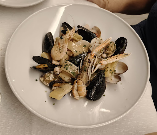 Read moreSono stata in questo ristorante con la mia famiglia e degli amici,ambiente carino sicuramente ma cibo e servizio pessimo...il ristorante era pieno e sicuramente c'era da aspettare per pranzare,ma non immaginavamo che dalle 13:00 ci arrivasse il primo alle 15:15,tra l'altro primo consigliato da chi ha preso l'ordinazione che suppongo fosse il proprietario,ma che aimé era veramente immangiabile,ravioli ripieni di cernia con una salsa di pomodoro praticamente cruda messa lì così buttata sopra tanto per..... paccheri con gamberi burrata e pistacchio senza alcun sapore..... abbiamo lasciato quasi tutto nel piatto. Ci era stato consigliato perché per quello che avevamo scelto c'era da aspettare un'ora e mezza così c'è stato detto ma poi ne abbiamo aspettato molto di più,la pasta dei bambini cruda..... l'unica cosa buona le cotolette dei bambini.Abbiamo chiesto il conto e quando siamo andati in cassa per pagare il tizio lo stesso che ha preso le ordinazione è rimasto lì con la testa abbassata senza nemmeno chiederci se siamo stati bene,non una parola non un grazie... niente. Il personale non lo commento nemmeno...... Non lo consiglio assolutamente..... anzi io cambierei "solo qualità" in qualcos'altro la QUALITÀ è...