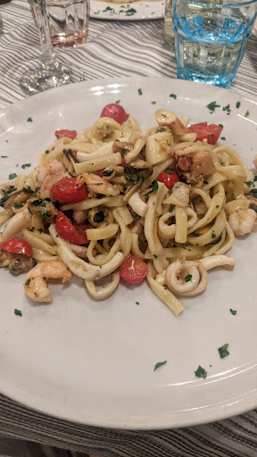 I have been here a few time in a week; lunch time is crazy how busy it gets, most working people's, a fix menu, good food at a great price. The evening is more for calm, most of the time we tasted fish pasta dishes and mix fried seafood, all very good really enjoyed. It's not a romantic place, just go for a good food. They have a big...