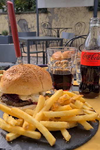 Locale molto accogliente, con splendido giardino e ampia sala interno. Ruggero e Emy ti fanno subito sentire a casa con i loro sorrisi, anche il cuoco è simpaticissimo oltre che bravo, io sono fan dei primi e i suoi sono super. Anche gli hamburger non scherzano! Quello nella foto è il "bello tosto", con bacon, bufala e cipolla caramellata e le patatine sono super croccanti. Da leccarsi i baffi! Ho provato anche la pinsa, non sono un'esperta ma a me è piaciuta molto, bella croccante e gustosa. Purtroppo nelle varie occasioni ho fotografo solo il panino...il resto l'ho mangiato prima di tirare fuori il telefono... I prezzi sono onestissimi, hamburger con coca cola e caffè viene sui 20 euro e li vale tutti. Alcuni piatti del menù, inclusi i panini, si posso chiedere in versione senza glutine. Ottime le birre. Bimbi e cani sono benvenuti. In zona si trova facilmente parcheggio, quindi comodo per chi arriva...