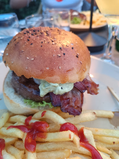 Read moreAccoglienza pessima, titolare? vestito tutto trasandato, per un locale così sinceramente mi sarei aspettata tutt'altra accoglienza. Mio marito per farmi una sorpresa per il mio compleanno, aveva appositamente prenotato chiedendo espressamente un tavolo nel gazebo, purtroppo all'arrivo non ci è stato dato quanto promesso e siamo stati fatti accomodare in un tavolo qualsiasi nel giardino ( fatti 50 km apposta per il gazebo.. vabbè). Cameriera che ci ha servito davvero gentile, solo per identificarla, era una ragazza magra e sorridente. Ad un'altra cameriera abbiamo chiesto una bottiglia di acqua, sembrava scocciata e pure un po' allucinata. Veniamo al cibo: pizza assolutamente niente di speciale, molto declamata ma l'impasto risulta un po' strano, tutt'altro che soffice e vaporoso... hamburger, se non fosse stato per la cipolla caramellata, non sapeva assolutamente di nulla, di nulla la carne, di nulla la.maionese aromatizzata al basilico, di nulla il bacon( talmente duro da dovere essere sputato perchè non masticabile)...insomma, più apparenza che sostanza. Sul conto non posso dire nulla perché la cena mi è stata offerta...a detta di mio marito, pagato comunque un'esagerazione!