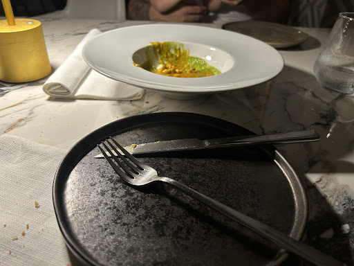 Siamo stati a cena in questo spettacoloso ristorante ma che mette ansia ed agitazione, nonostante siamo abituati a mangiare in dei posti di lusso e a sentirci a casa, in questo ,loro, nn ci hanno accolto con molto entusiasmo , forse dopo aver visto un neonato un po’ iperattivo ed una bimba di 3 anni. L’arte culinaria è stata eccellente mangiare sano genuino ed ancor più cucinato alla perfezione, cibo interamente prodotto da loro dalla favolosa focaccia che si fa mangiare da se, all’ottimo pane cafone, ma se il servizio di cucina è il top , il servizio di sala un vero flop, cameriere che pecca di presunzione, arroganza e poco savoir-faire che in questo mestiere deve essere un eccellenza se parliamo di un locale così top! Abbiamo più volte richiesto il pane e alcuni mancamenti sono avvenuti durante il servizio; addirittura da toglierci il porta pane perché i bimbi stessero giocando o ancor più da guardarli male se parlassero ad alta voce; per non parlare della lampada che più volte si è avvicinanti cambiando il colore a suo piacimento, è stato arrogante fin dall’inizio dalla portata del menu peccando di arroganza affianco ad un cliente invitando alla rieducazione del cibo e nn consigliando una cottura migliore per quel tipo di alimento. Fortuna vuole che la gestione di questo locale non venga affidata a persone così, altrimenti penso potesse fallire ,ma, bensì i due soci oltre ad essere capaci nel loro mestiere hanno uno spirito completamente differente. Si vede che hanno voglia di crescere e di far crescere il loro locale. Detto questo lo consiglio solo! se sprovvisti di bambini! o di altre persone che possano sentirsi a disagio con camerieri così. Ma, inviterei il cameriere che ci ha seguito ieri durante il servizio ad un corso di formazione per capire che, i bimbi in un locale sono oggetto di ritorno se si trovano bene e vengono accolti con amore, perché se ci si ritrova a casa si torna sempre dove si è stati...