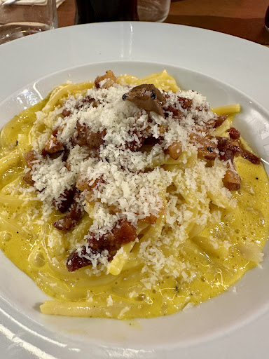 🇬🇧🇬🇧🇬🇧 What can I say? All excellent! 5 Stars in each section is the most appropriate option to describe the experience. Excellent food, we tried two first courses: the carbonara tartufata and the cacio e pepe with lime zeste and prawn tartare (a reinterpretation) and both were delicious. In particular, a special mention for the revisitation of the cacio e pepe, the original recipe is a great classic and it is not easy to try your hand at the great classics, but I must say that the chef managed to balance the flavours and make a recipe I love fresh and even more appetising. In addition to the first courses, we had one dessert each, the Atipico - a must try - and the chocolate cupcake - delicious. Service was attentive, friendly, helpful and - above all - ATTENTION TO DETAILS. Clean, modern-style restaurant that creates a good overall ambience. RECOMMENDED!