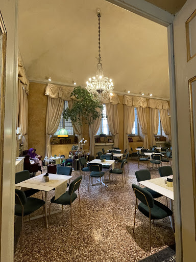 What truly stands out here is the building itself. The café is part of the historic Teatro Regio complex, built in the early 1800s under Duchess Maria Luigia. You can feel that history in every detail—the chandeliers, the mirrors, the marble, the sense of old-world elegance.