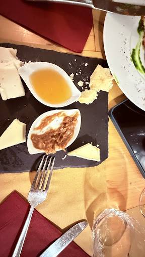 Starting with the Lambrusco Frizzante wine – it won us over right away. Then came a board of local cheeses served with two sauces, one of which turned out to be honey. Everything complemented each other perfectly.