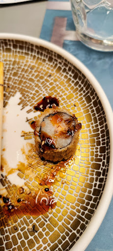 Non capisco l'entusiasmo per questo locale: vedendone così tanto parlare positivo e vedendo le foto, pensavo si trattasse di un buon posto. Invece non è, a parer mio, questo granché ed è anche caro per il servizio e il cibo offerti. Locale affollato, ma noi in due per sentirci dovevamo alzare di molto il tono di voce perché ci trovavamo quasi incollati ad una tavolata di 15 persone rumorosissima e poco rispettosa a cui nessuno diceva niente. Non vi è una vasta scelta come credevo e la qualità andrebbe migliorata. Noi abbiamo ordinato vari piatti che ci sono stati serviti ricoperti o immersi nella salsa (che tipo di salsa non lo abbiamo capito) al punto che certi cruditè non si distinguevano di sapore. Nella foto potete anche vedere quanto un hosomaki ripieno di salmone sia scarso in fatto di ripieno. Per non farsi mancare nulla ci hanno servito degli involtini vietnamiti ancora freddi al centro e sbagliato un piatto, che però per fortuna ci hanno corretto. Cibo in generale nella media. Il personale è molto carino, nulla da dire. Alla fine non vi erano esagerati tempi di attesa. Però tutto, appunto, comunque nella media. La cosa che più mi infastidisce è la bottiglia di acqua...