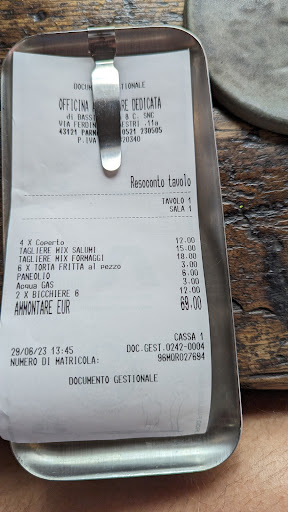 After some research, OAD ended up on our list for our only meal in Parma, and it was chosen in the end. We are so happy that it was. We made a reservation upon recommendation of our BnB hostess. We had a lovely table outside for the 6 of us (3 adults/3kids). It was a Sunday and we are thankful that they were open, though the neighborhood was notably slower than the previous day. We had the Cured Meat selection, Cicciolata, Giardiniera, Guanciale on Polenta Cakes, Torta Fritta, Anolini in Brodo, Kids' Tagliolini with Olive Oil, Gnocchi with 3 Tomatoes, and Carne Salada. To drink we had a Craft Cream Ale and a Lambrusco bottle. All the cured meats were wonderfully curated and delicious, especially the Cicciolata! The Torta Fritta was a hit with everyone when eating the Salumi. I had the Anolini and have to say it was one of the most memorable things I have eaten on this trip, rich, simple and perfectly executed, also filling. After our Espresso I asked for a digestif and I was given an incredible local drink, fruity and intense, but I couldn't understand the name 🤪 Thank you ladies for an incredible...