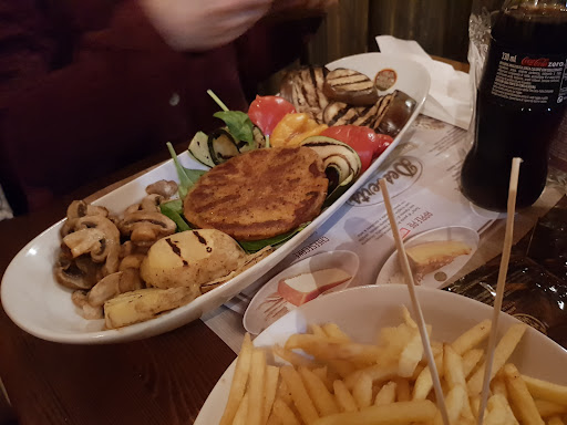 Read moreTralasciamo cose "banali" come il Non avere la salsa BBQ in una steakhouse e il far sedere 5 persone in un tavolo che ne tiene 4 a mapalena.... A fine serata, dopo aver mangiato, ci rechiamo alla cassa per pagare e chiediamo gentilmente alla cassiera con gli occhi azzurri di dividere il conto per 4(attenzione perché non abbiamo chiesto di pagare ognuno la propria consumazione ma semplicemente di dividere il totale, cosa che si fa in 3 secondi) , la cassiera dice di non poterlo fare e visto il cartello appeso alla cassa avrei anche potuto capirla, SE... E dico "SE" il locale fosse stato affollato, invece c'eravamo solo noi. La mia amica irritata le fa notare che è una politica sbagliata visto il locale vuoto, a quel punto la cassiera insiste dicendo di non poterlo fare ugualmente, la mia amica si irrita ancora di più e a quel punto la cassiera dice "se volete lo faccio". Allora che fate ci prendete in giro? Tra l'altro, la cassiera (sempre la stessa con gli occhi azzurri), appena rivisto il conto, sbatte i soldi di resto sul bancone e noi ce ne...