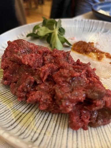 Lovely discovery in the heart of the city center of Parma. It's worth a visit. A great restaurant where you can taste different flavors of Italian cuisine. On the menu you will find both Parmesan and other Mediterranean recipes. As a starter, I tried, and I recommend, the Cavallo Pesto which is a tartare of horse meat, typical in the area. Apparently people from Parma use to queu outside butchers to get raw horse meat on Saturdays. The first courses include nice pasta dishes. I tried the red gnocchi and they were really delicious. Second dishes are also Italian but didn't find anything elaborated worth trying. The list of desserts was fantastic. I tried the Millefoglie and was succulent. The restaurant has a huge selection of wines including special dessert wines. A starter, main course, glass of wine, water and dessert will cost you...