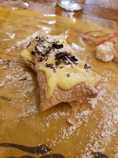 Read moreLundi 7 août 2023 : Parma… Nous sortons de l’appartement un peu avant midi. Daniele nous accueille au restaurant Ombre Rosse dans le borgo Tommasini à quelques pas de notre chez nous temporaire. Sans le savoir, nous entrons au Paradis des papilles dans un cadre magnifique et créatif. Les murs rose-rouge nuagés, la décoration attrayante, le parquet ancien, les rosaces moulurées au plafond, les tables au plateau carrelé en pierre, les chaises en fer pourvues de coussins confortables, contribuent au bien-être. Patrick et moi choisissons de concert un tortino di patate con crema di Parmigiano [tourte aux pommes de terre à la crème de parmesan] et des verdure alla griglia. Pendant la préparation des mets, je croque du pain maison juste sorti du four que j’agrémente de beurre grâce à la bienveillance de Daniele. Nous nous régalons. Du chili pepper en poudre sur l’assiette donne une note épicée à la réalisation esthétique. Nous décidons de prendre un dessert. Patricio opte pour un cheesecake al frutto della passione e Amarena Fabbri [cheesecake aux fruits de la passion et cerise Amarena]. Je choisis un millefoglie con crema pasticcera e fragole [un millefeuille avec crème pâtissière et fraises]. Les douceurs sont divines. Après treize heures trente, le cœur léger, nous quittons le restaurant, cette caverne d’Ali Baba des saveurs, après avoir remercié vivement Daniele en le gratifiant d’un bon pourboire. Une adresse incontournable à Parma où il fait bon vivre des instants...
