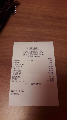 Read moreSono ormai anni che frequento settimanalmente la pizzeria Parigi, posso dire di conoscere il menu a memoria e di aver provato quasi tutti i piatti, di carne, di pesce e non, oltre ovviamente alle pizze. Di recente hanno anche aggiornato il loro menu, aggiungendo vari piatti tra cui la torta fritta (il lunedì sera e martedì sera) buonissima e morbidissima, immancabile antipasto della tradizione parmigiana. Sempre tutto buono, ma oltre a questo, la gentilezza dei proprietari e dei camerieri, sempre pronti ad accogliere i clienti con un sorriso, è una qualità fondamentale di questo locale che lo rende speciale, che mi fa sentire a casa ogni volta che varco la soglia della porta. Sono inoltre sempre stati molto attenti alle richieste per intolleranze alimentari, e fanno anche la pizza senza glutine, rendendo il proprio locale inclusivo. Grazie di esistere Pizzeria Parigi, ci rivediamo...