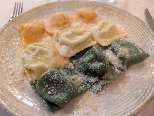 As main course, the tris di Tortellino, a trio of stuffed pasta, each with its own distinct filling and sauce, offering a playful yet sophisticated tour of regional flavors. It was the kind of dish that makes you pause mid-conversation just to savor the moment.