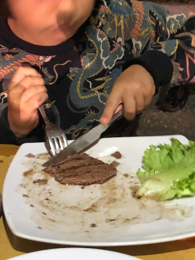 Read morePrenotiamo una tavolata da 16 persone, al telefono chiedo se dobbiamo fare menù unico (la volta prima ci era stato imposto) e rispondono che non è necessario. Alla sera ci presentiamo in 19 con 3 bambini di 8, 1 e 2 anni. All'arrivo ci viene detto di non chiedere troppe portate e di unificare gli ordini perché altrimenti sono in difficoltà....ovviamente mettere d'accordo 2 tavolate diventa impossibile quindi alla meglio ordiniamo: 13 antipasti di salume 13 grigliate di carne 3 bruschette 2 piatti di tortelli 1 filetto di Angus al sangue (di cui metterò la foto) 1 tagliata (credo, non sono sicuro) contorni di patate e patatine. Direi un ordine più che accettabile per un ristorante semideserto di martedì. Seduti alle 20.30 arrivano i salumi alle 21 e per secondi e primi attendiamo le 22.30. Un ora e mezza di attesa mi sembra un po eccessivo e nonostante le continue richieste di portare avanti almeno l'ordine dei bambini non c'è stato nulla da fare. Dopo le nostre lamentele la cosa che ci aspettavamo era un scusate, abbiamo avuto dei problemi, invece la cameriera è uscita per dirci che la "COLPA ERA LA NOSTRA" che abbiamo scelto TROPPE COSE DIVERSE . Tralasciando la qualità del cibo che è arrivata...patate fredde, il filetto di Angus era una bistecchina stracotta ripiegata su se stessa per dargli spessore che ci hanno fatto pagare 18€, e non vado oltre. rispettando il lavoro di tutti, sapendo che gli inconveniente possano capitare, sono convinto che l'educazione e il rispetto verso chi ti porta denaro sia d'obbligo. P.S.: nella foto il filetto di...