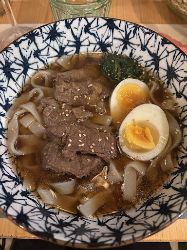 Read morePosto caldo e accogliente. Decisamente zen. Ho trovato molto buono il cibo. Verdure fresche e saporite. Thè verde caldo buono un bicchiere piccolo, avrei voluto la teiera soprattutto in inverno per riscaldarsi. tempura di verdura è buonissima la qualità delle verdure è spaziale sono 4 verdure ma di dimensioni notevoli. Il tofu era squisito morbido e cremoso e la salsa dell'insalata era strepitosa. L'insalata buona ho trovato molto piccolo, dentro una ciotola piccolo. Non ci sono piatti di Sushi, ma di fianco che un ristorante sushi. Ci sono varie opzioni di pesce e pollo, Non ho trovato molte opzioni vegan/vegetariana. Di zuppa e piatti freddi(che in realtà penso che basta chiedere di togliere l'ingrediente dalla preparazione per farlo diventare vegan/vegetariano). Penso che la zuppa semplice è vegana, ma l'accompagnamento (Tempura) è misto di verdure e pesce. E in alcuni piatti non c'erano informazioni precise, nella pagina dei dolci non era chiaro di che cosa erano fatti (latte, uova, panna ...) e anche il cameriere non era capace di darmi una risposta. Bagno piccolo, ma PENSO che sia accessibile ai disabili. Il dolce anko mochi di fagioli rossi è uno, fosse troppo dolce per il mio palato, tra le tre io ho gradito di più questo di sesamo nero, il verde è al secondo posto e per ultimo quello bianco che ripeto erano troppo dolce. anko mochi è corposo e 3 sono troppi per una persona. Apparentemente è pet friendly (un labrador è potuto entrare senza problemi). Suggestioni: più piatti a base verdura di ingredienti vegan. E aggiungere piatti di ramen semplici con verdure senza...